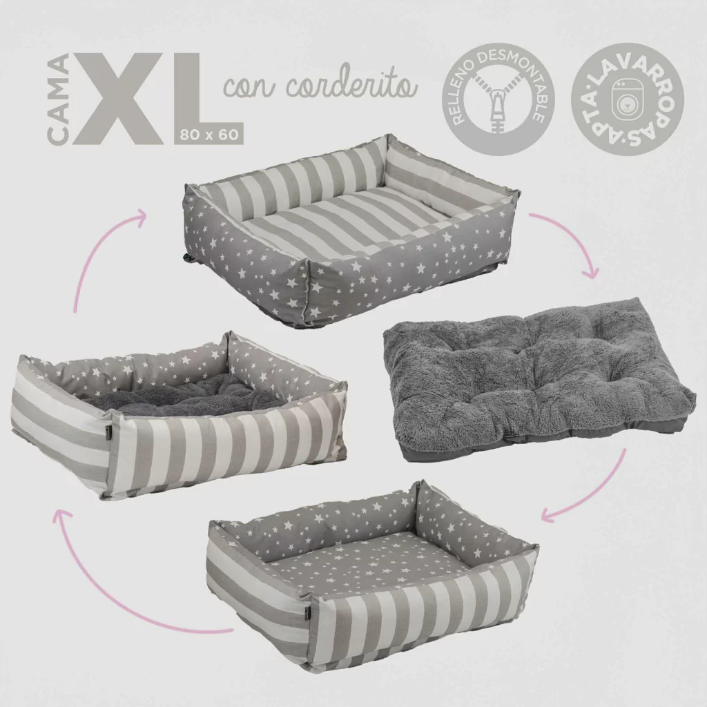 Nuestra cama XL está pensada para los malcriados más grandes. Tres modelos en uno, son reversibles y su colchoncito central se desmonta para lavar por separado. Diseñadas para brindar el máximo confort, son ideales para que tu mejor amigo descanse como un rey.