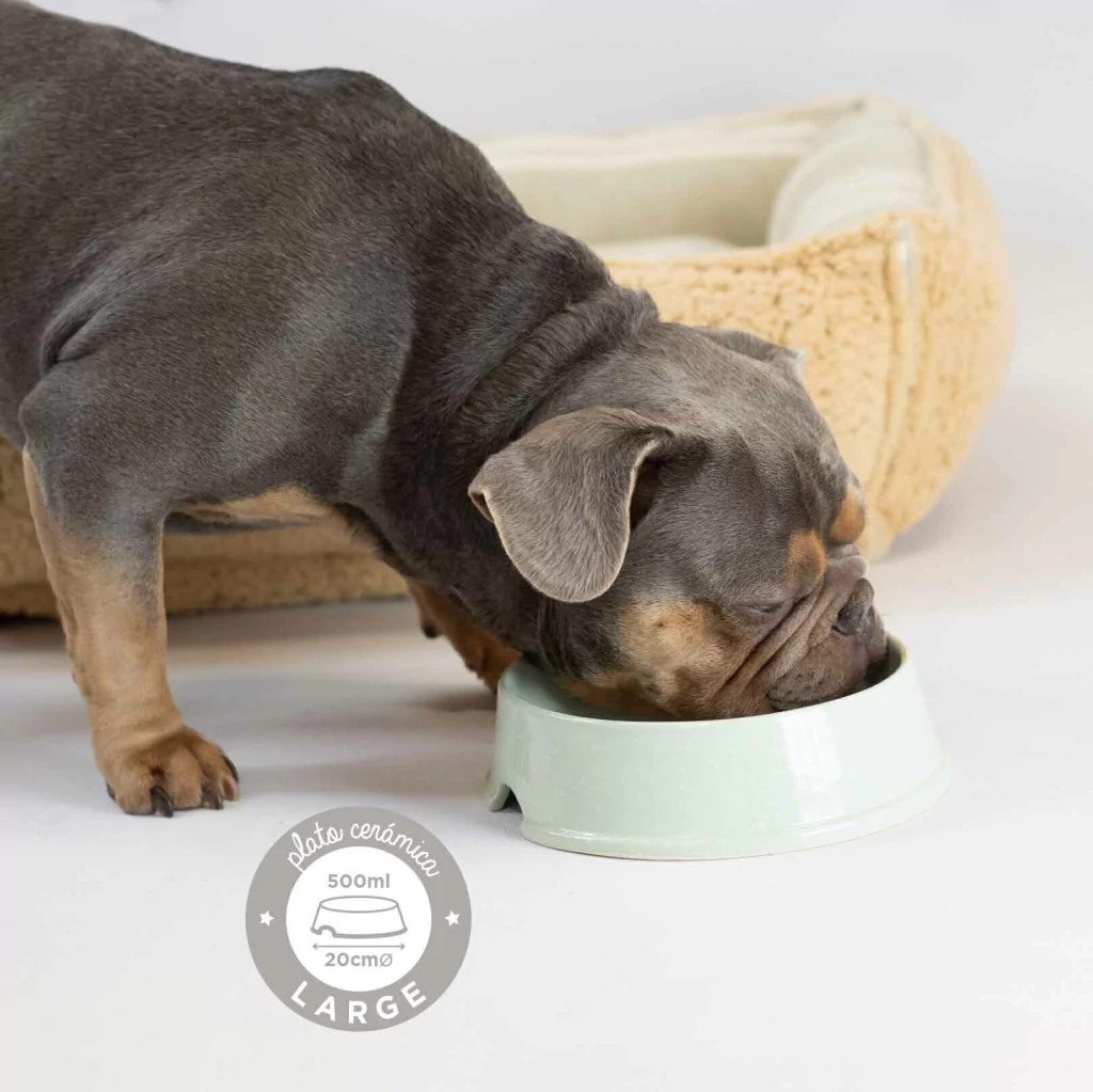 ¿Te gusta darle comida húmeda a tu perro? El Platito de cerámica es perfecto para eso, porque su superficie lisa y no porosa evita que la comida se pegue y facilita la limpieza.