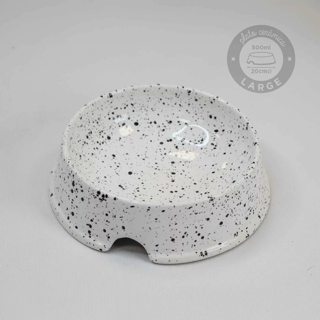 ¿Tu perro es de raza grande y buscabas un plato bien fachero y resistente? ¡Acá lo tenés! El Platito de cerámica tamaño LARGE es ideal para él.