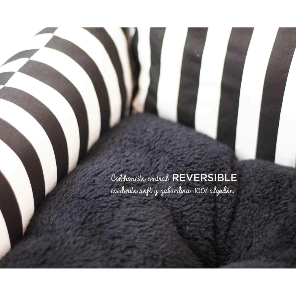 ✔ Apto para invierno y verano: Incluye un colchoncito reversible, con un lado de corderito ultra suave para los días fríos y otro de tela fresca para el verano.